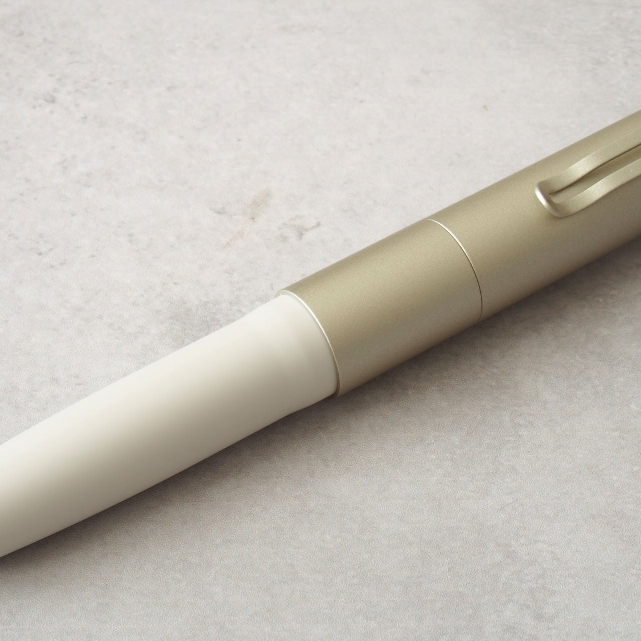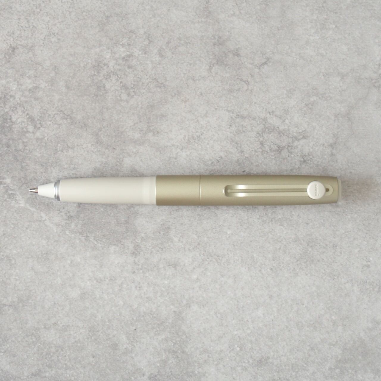 すっきりとしたデザインのストレート軸で、重心はペンのほぼ中心。バランスが良く安定した筆記が可能です。ボディカラーは上品なシャンパンゴールドで、ボール径は0.7mmです。