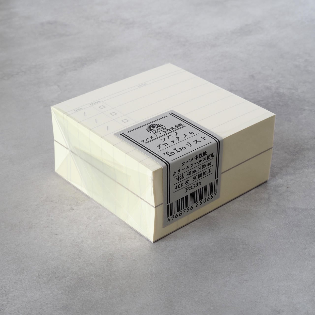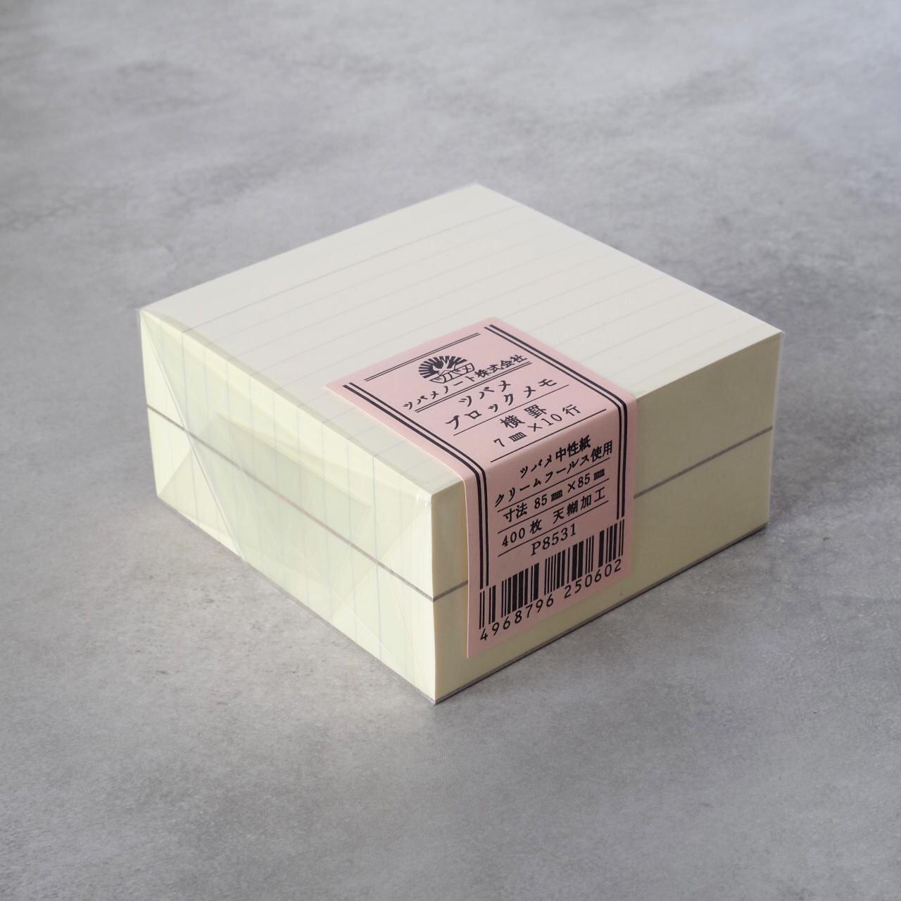 昭和22年創業の老舗ノートメーカー「ツバメノート」の、書き心地に定評のある “ツバメ中性紙クリームフールス” を使用したブロックメモです。85×85mmのコンパクトなサイズで、ちょっとしたスペースに使いやすいサイズ。天糊メモなので一枚ずつはがしながら使うことができます。