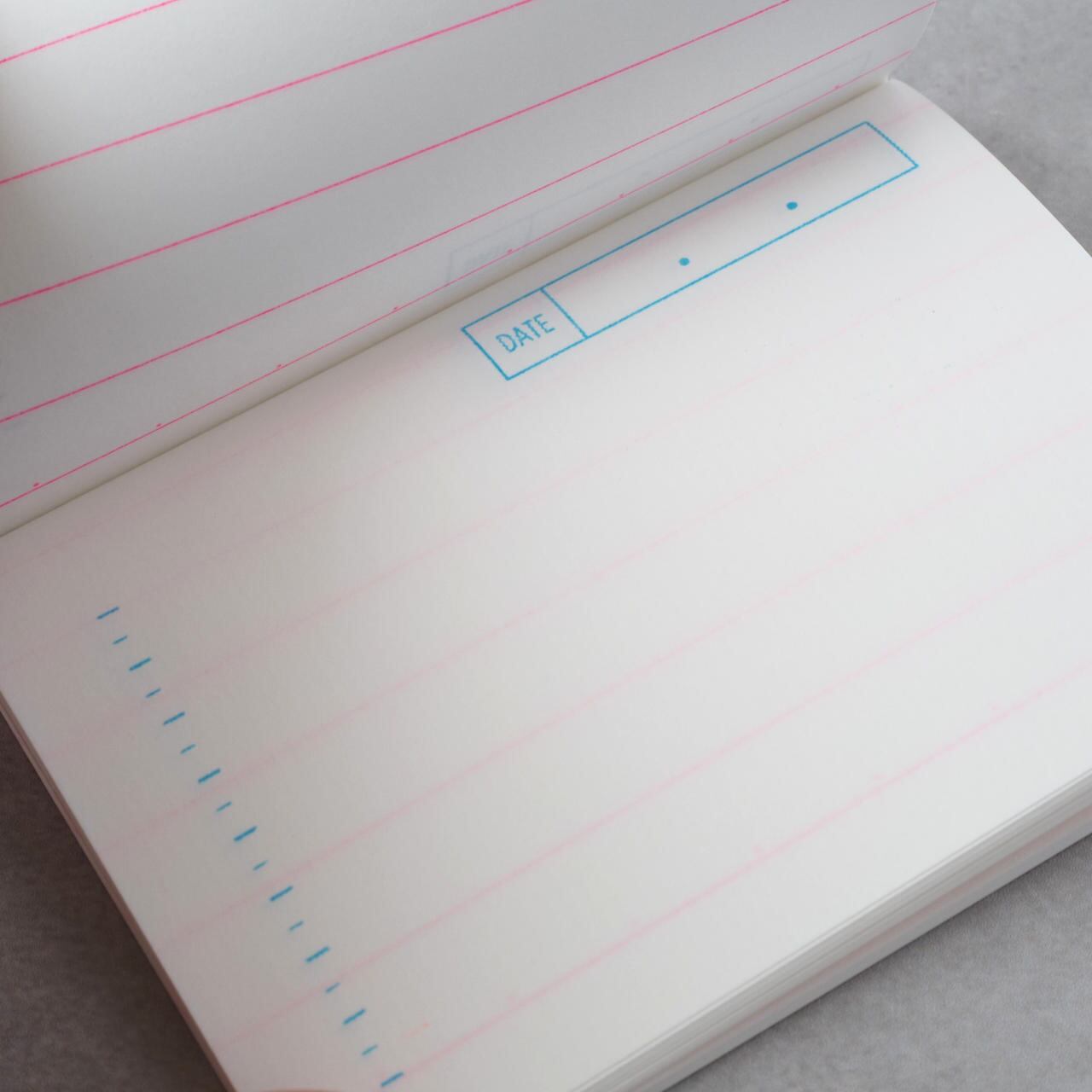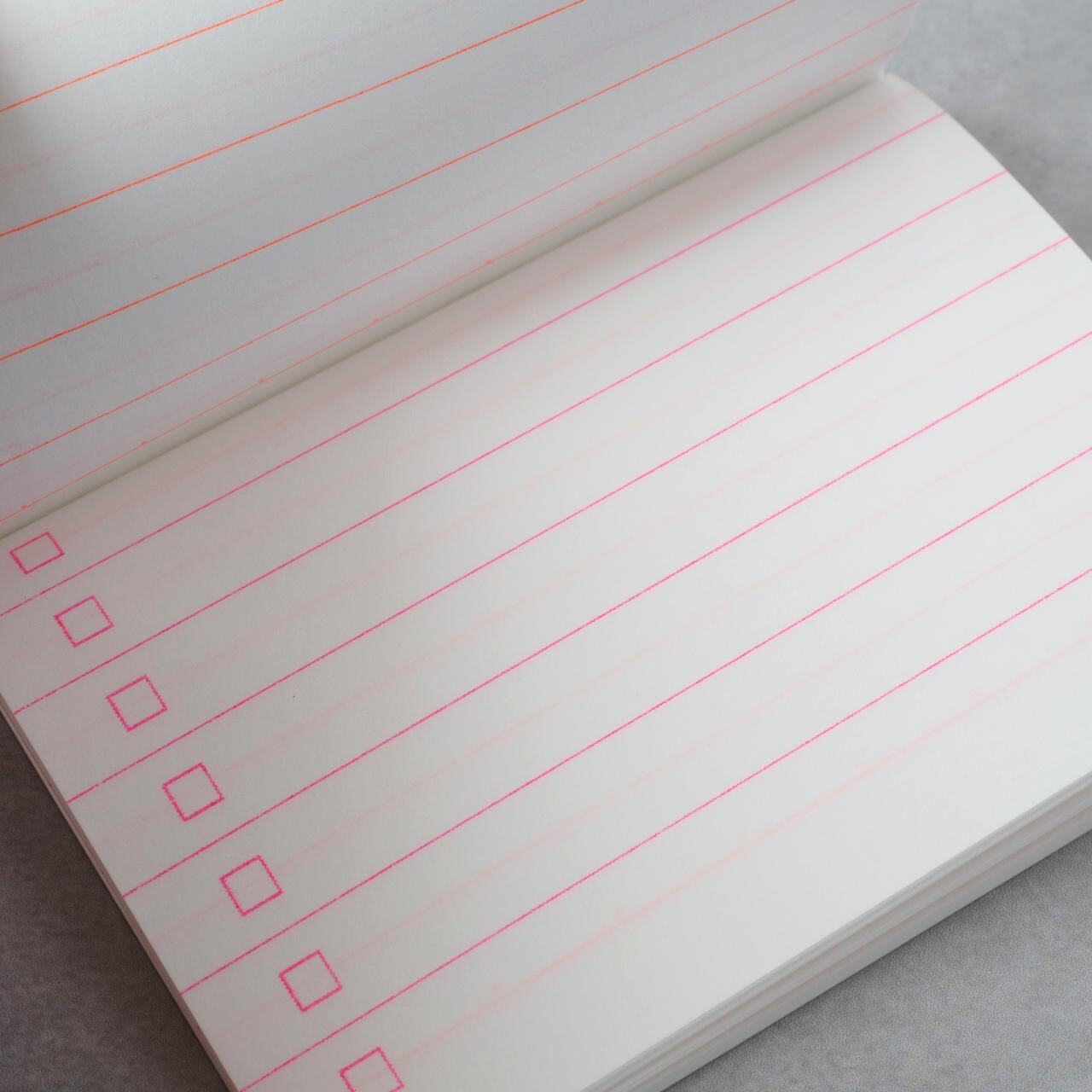 本文紙にはライフのオリジナル筆記用紙、Lライティングペーパーホワイトを使用。インキによるにじみや裏抜けも少なく、サラサラとした書き味が特徴です。長考・熟考した思案を一気に書き留められるペン先が吸い付くような滑らかさ、そして素材としての紙の質感を存分に楽しむことができます。