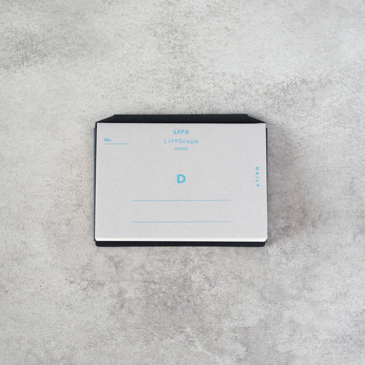 日本の老舗文具紙メーカー「LIFE(ライフ)」と、厳選した素材を使用し見たことのないような特別な文房具を製造している、東京発の文具ブランド「やまま文具」のコラボレーションアイテム。カスタマイズできる文房具シリーズ、“LifeScape” のカバーにセットして使用するミニノートです。
