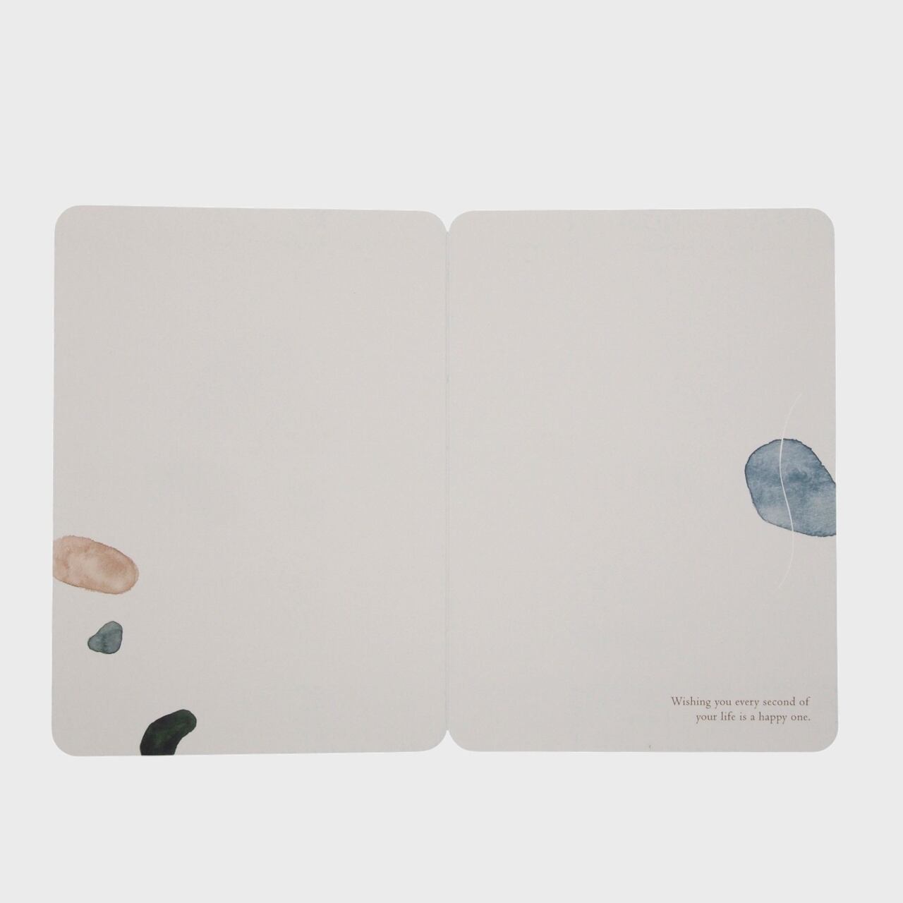 ジオメトリックデザインのカードは、箔押しの文字がアクセントになっています。柔らかな色合いで、落ち着いた印象のアイテム。二つ折りのカード内側にも、デザインが入っています。