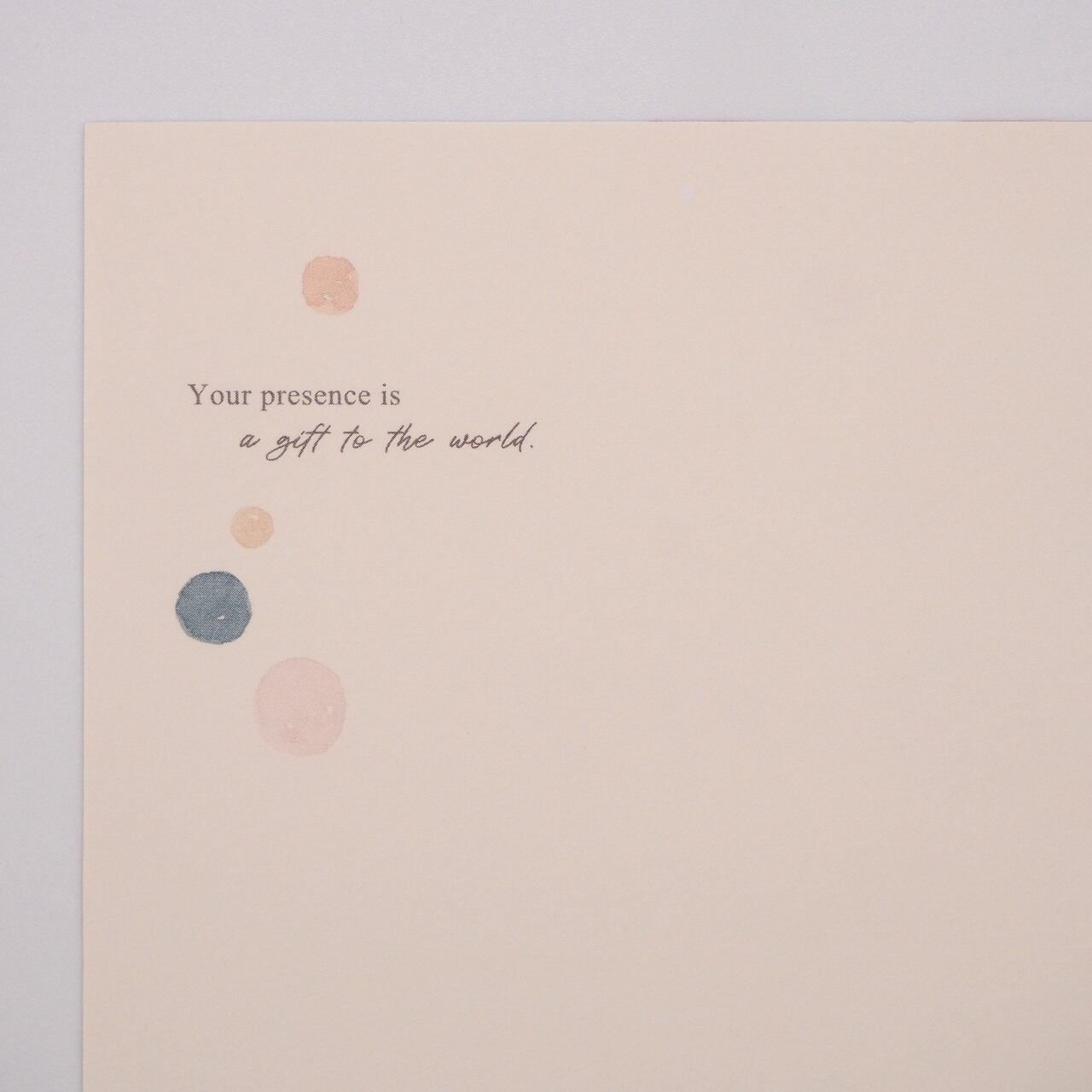カラフルなペールトーンのドットデザインのカードに、箔押しの文字がアクセント。二つ折りのカード内側にも、デザインが入っています。