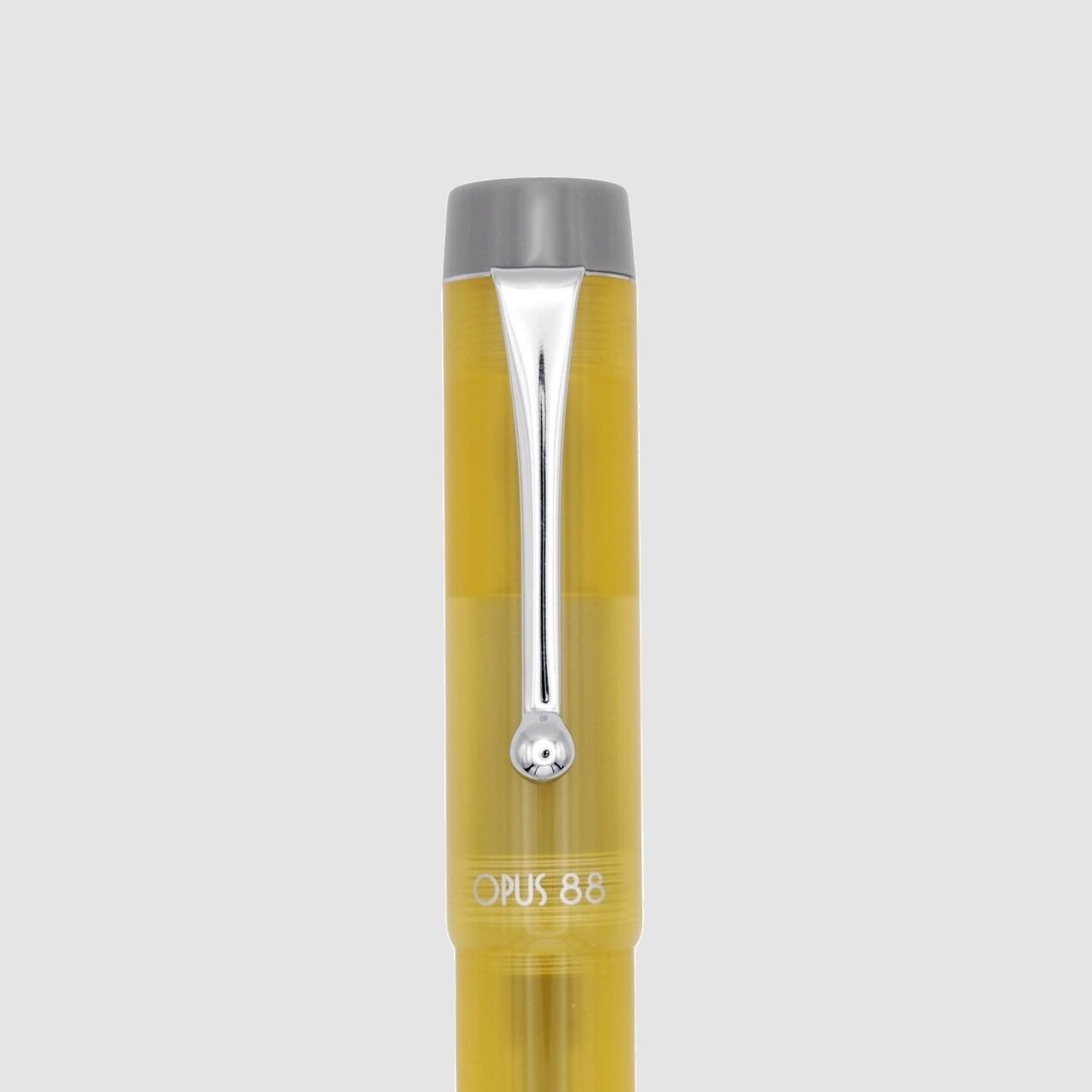 OPUS88は、OEM/ODMメーカーを前身とするブランド。創業者の“Michael Hsu(マイケル・スー)”が、メーカー時代に培った技術と経験をもとに、1988年にOPUS88を創業しました。精巧な作りの万年筆から、確かな技術力を伺うことができます。“DEMO(デモ)”シリーズは、クリア素材のアクリルを使用したデモンストレーターモデルです。2021年カラーのブライトイエロー。PANTONEの2021年の“カラー・オブ・ザ・イヤー”の2色を配色したカラーリングになっています。