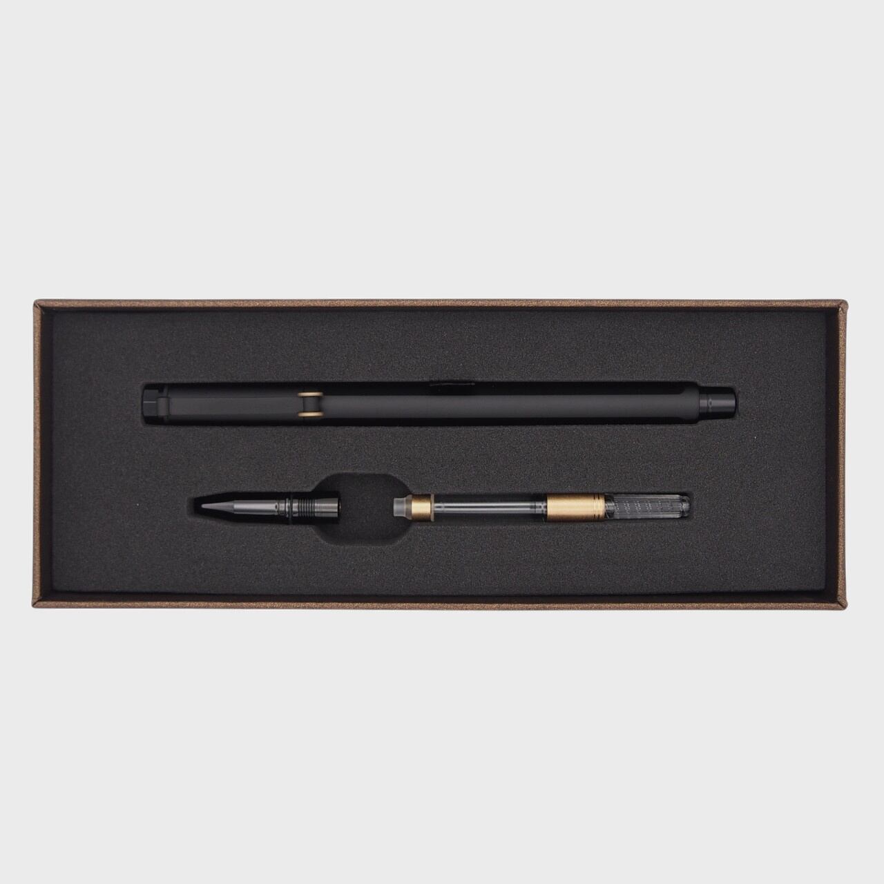 SKBは日本人が創業した“緑屋文具店”を前身とし、その後台湾人の“盧榮火”に引き継がれ、60年以上の歴史を持つ老舗メーカー。“Smooth(流暢)”、“Knowing(知性)”、“Beauty(美感)”の頭文字を取って名付けられました。ペン先パーツを組み替えることで、万年筆とローラーボールペンの2つのスタイルで使用することが可能な、機能的なデュアルユースペン。マット塗装のボディが高級感のある、スタイリッシュでモダンな印象のペンです。ガンメタルとブラックの2色があります。